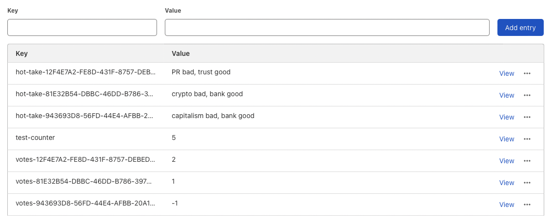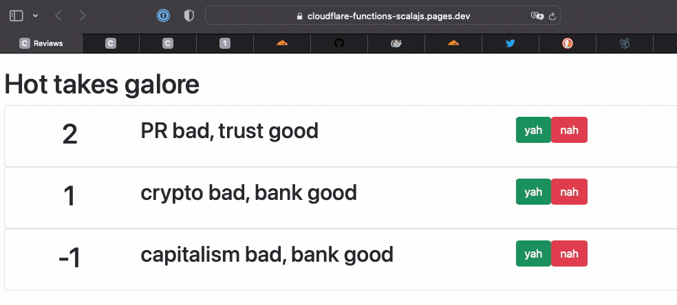 $ curl -XPOST http://localhost:8788/vote -d id=hello -d vote=yah