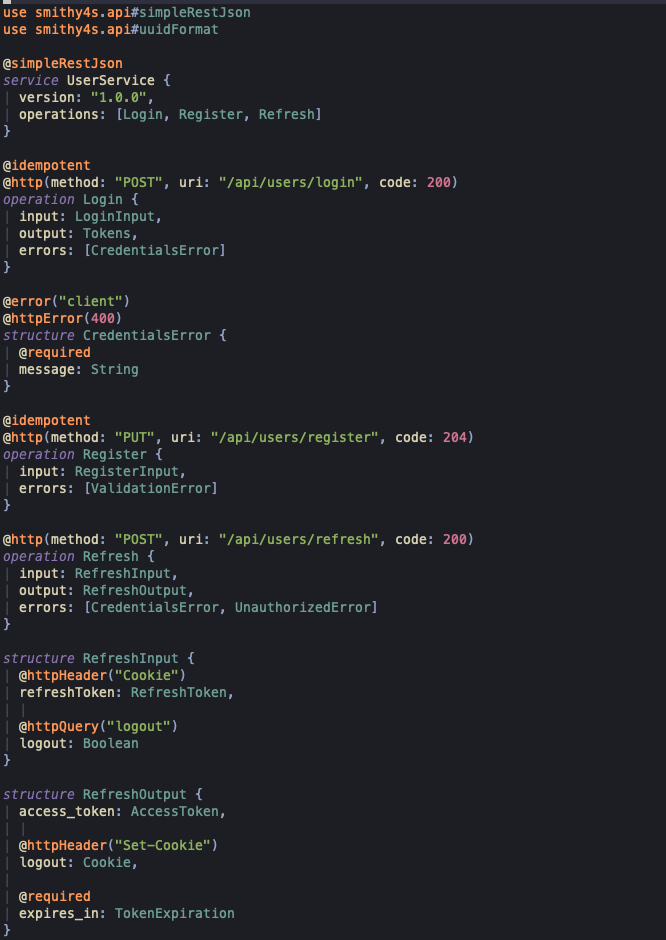 On the other hand, Smithy being a separate language means that the tooling for it has to be created pretty much from scratch.